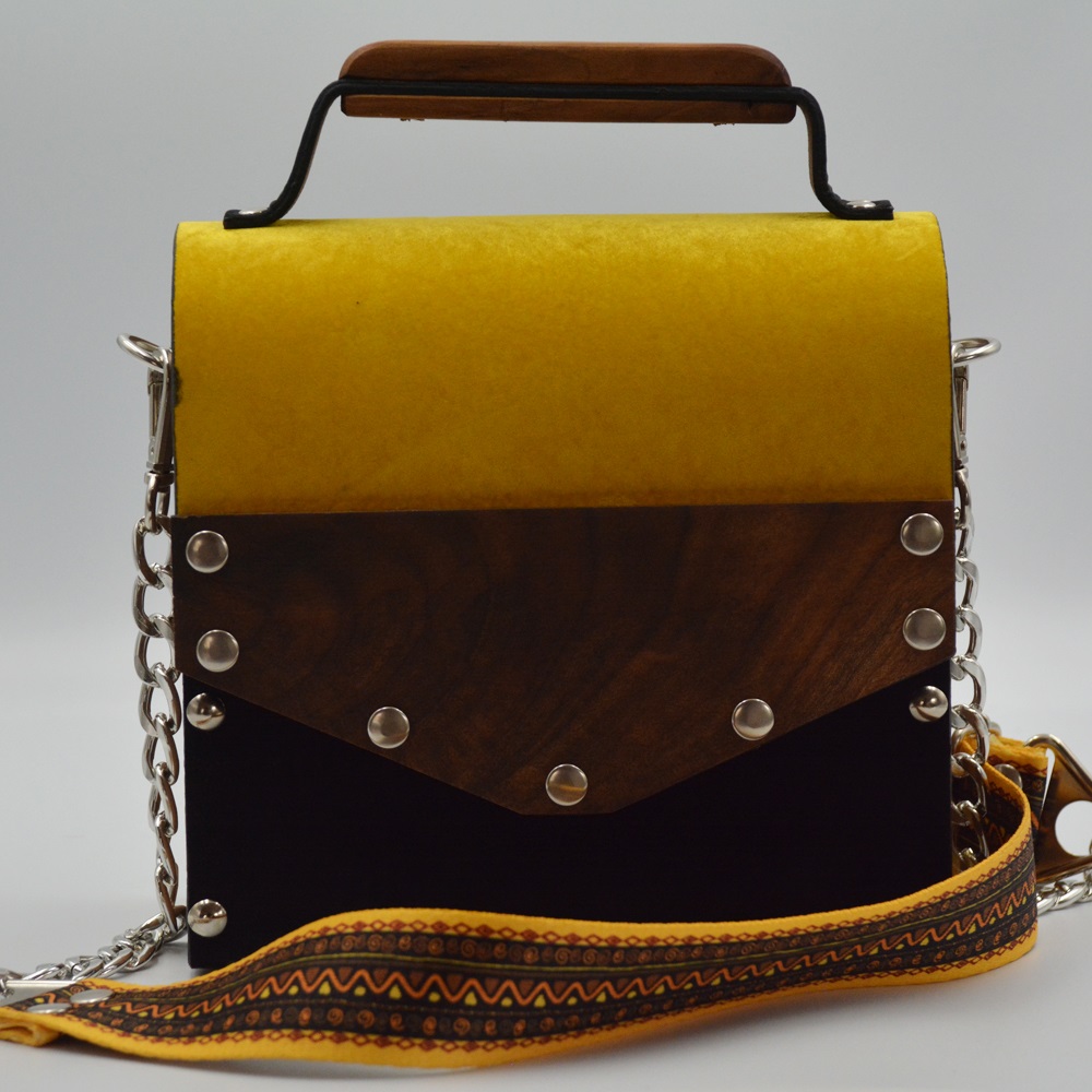 Walnut wood sides female suede/nubuck hand and shoulder bag