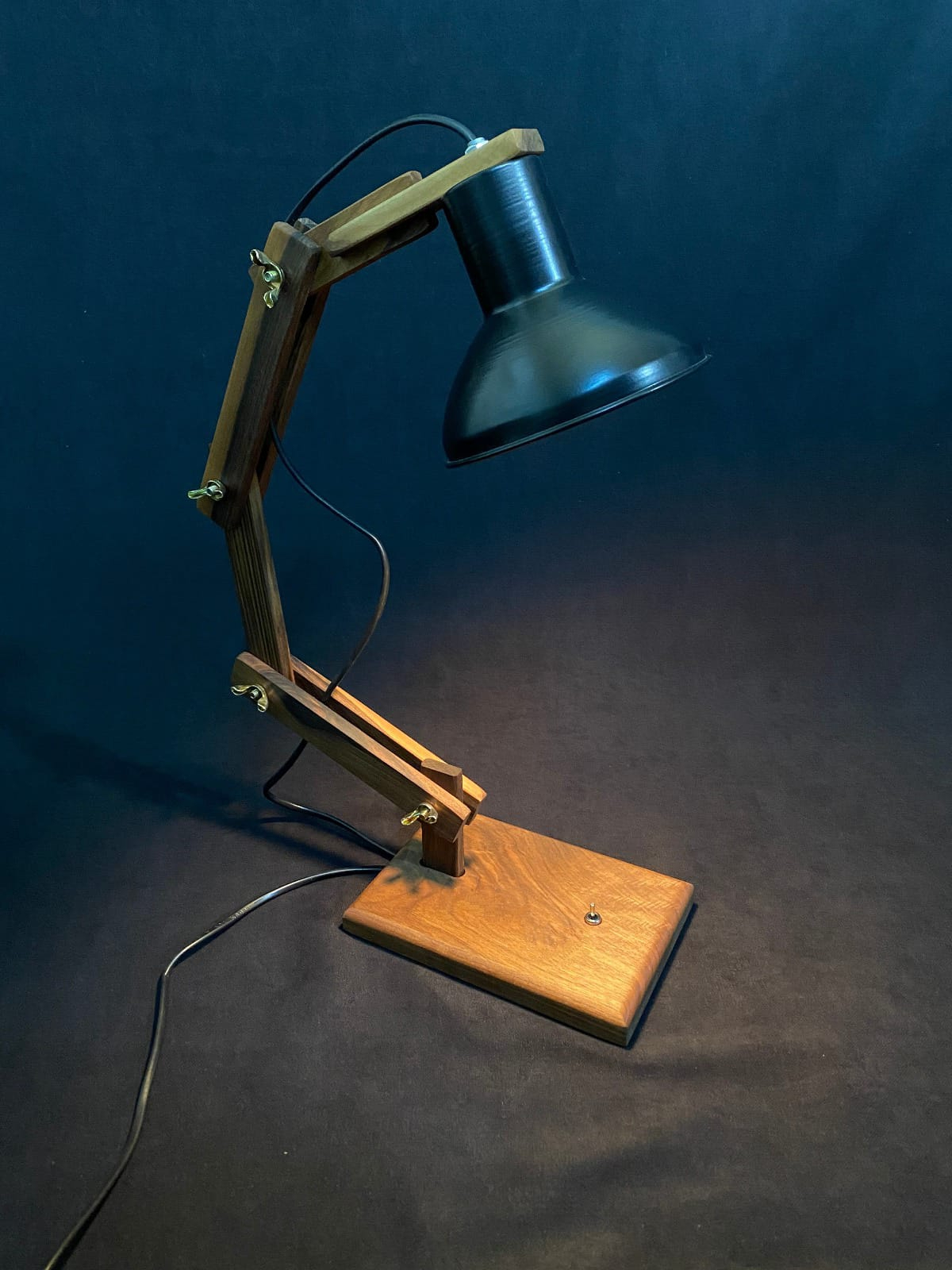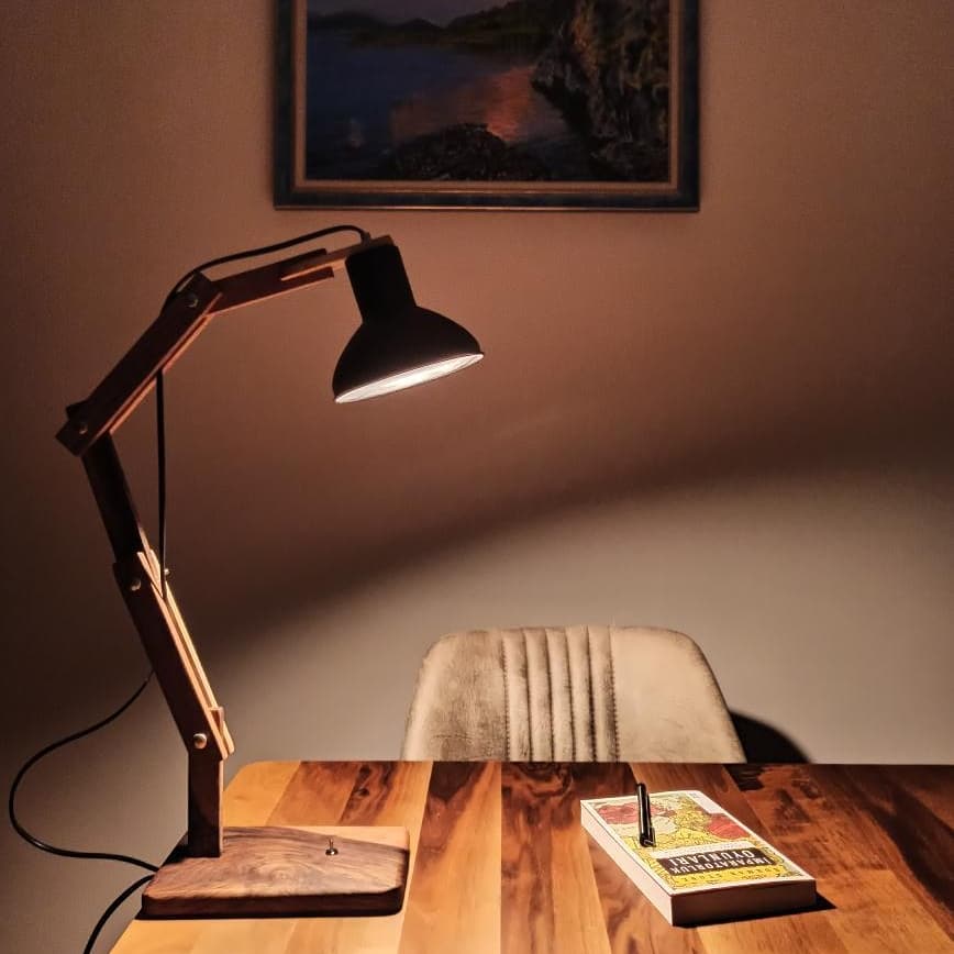 Handmade wooden adjustable desk lamp