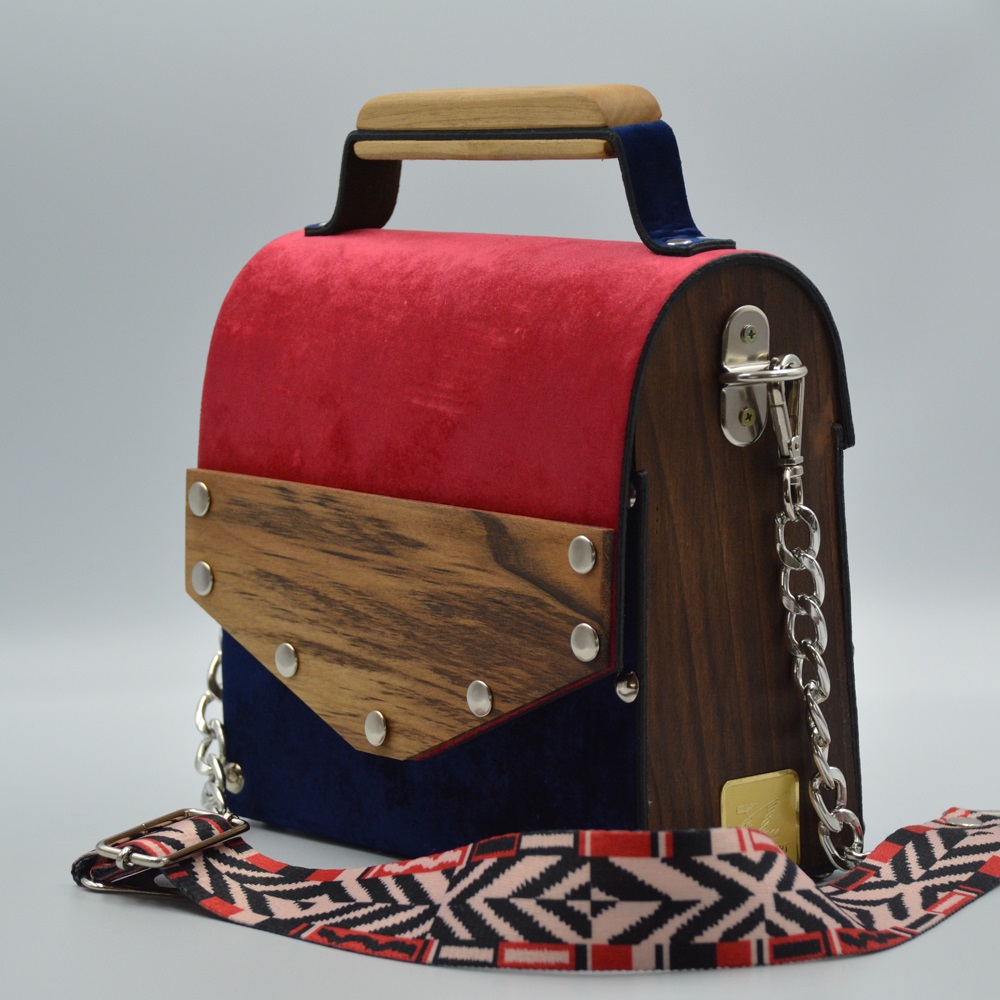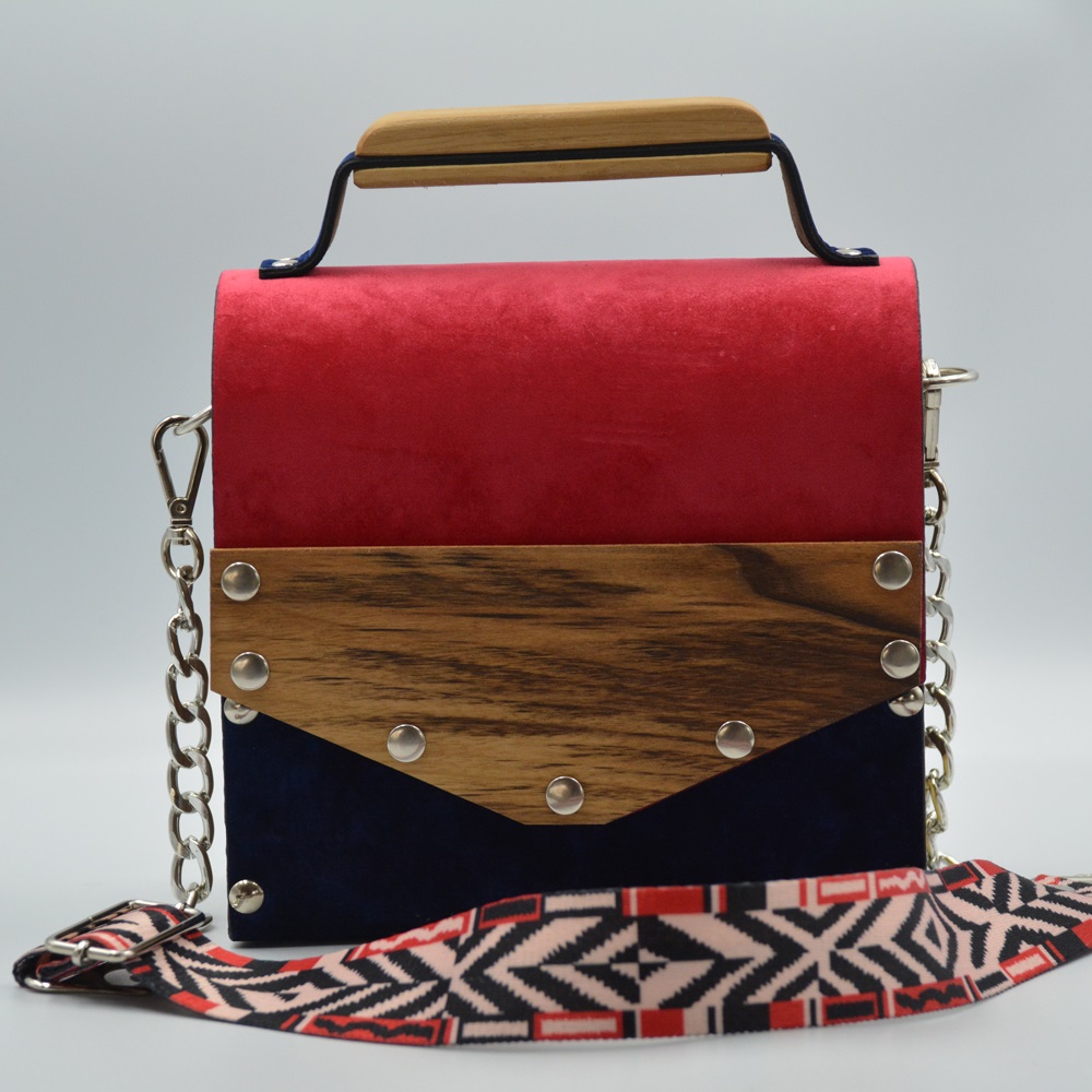 Walnut wood sides female suede/nubuck hand and shoulder bag