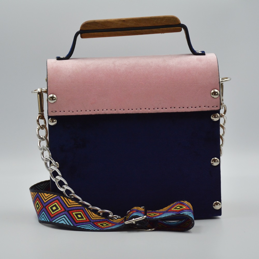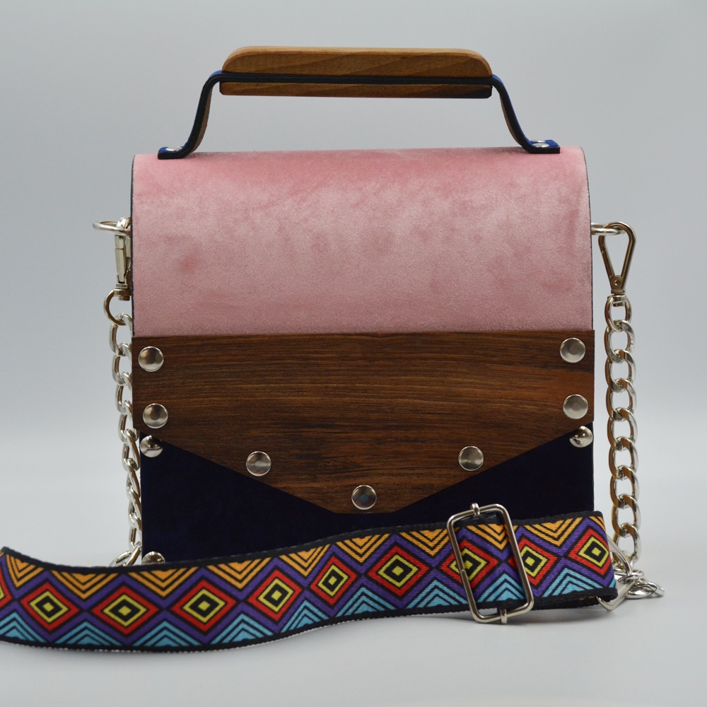 Walnut wood sides female suede/nubuck hand and shoulder bag