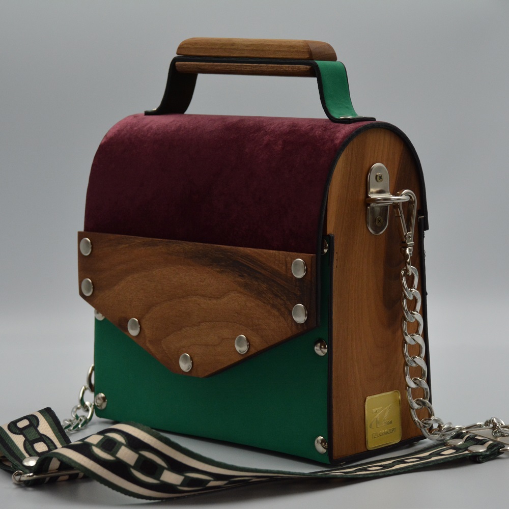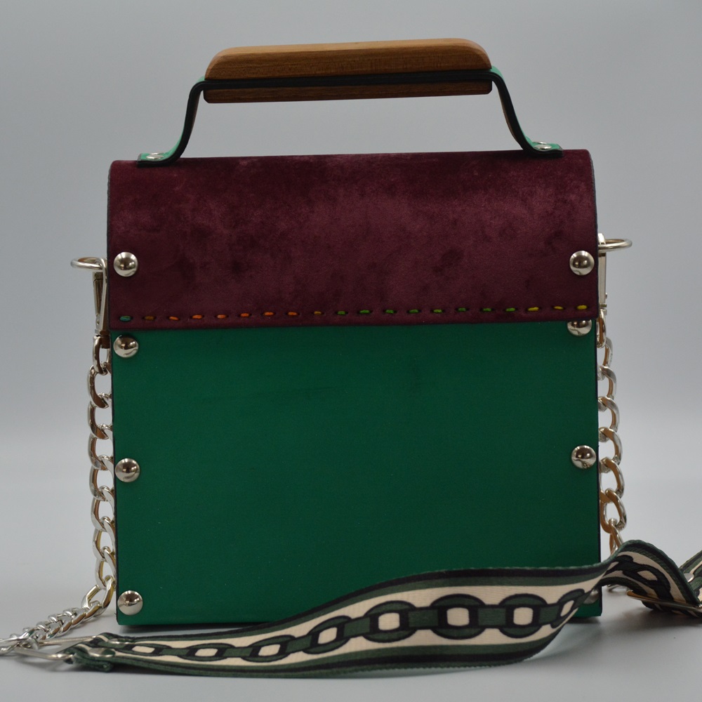 Walnut wood sides female suede/nubuck hand and shoulder bag