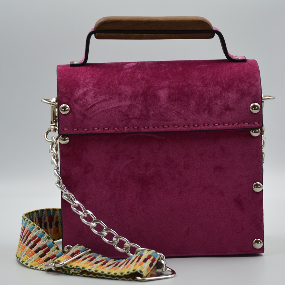 Walnut wood sides female suede/nubuck hand and shoulder bag