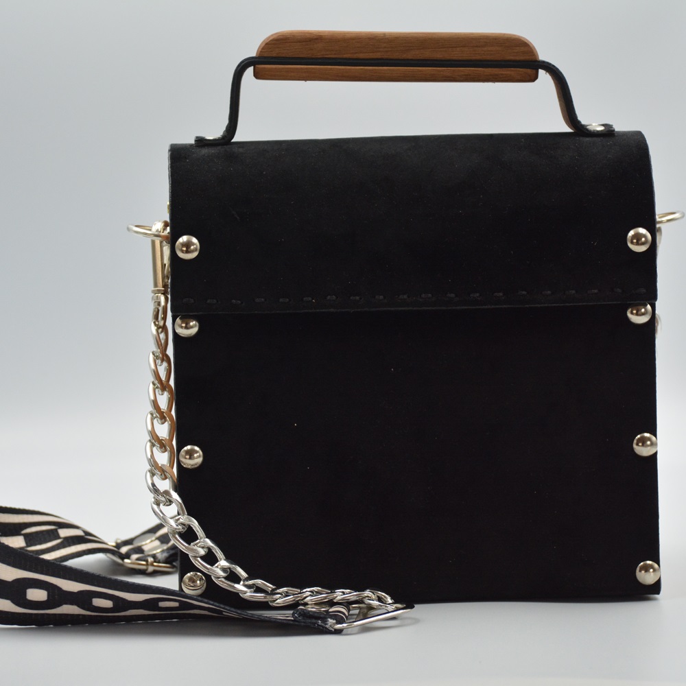Walnut wood sides female suede/nubuck hand and shoulder bag