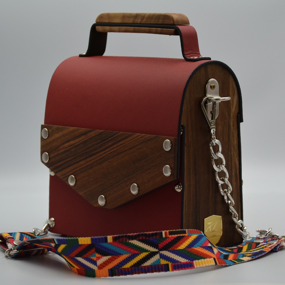 Walnut wood sides female suede/nubuck hand and shoulder bag