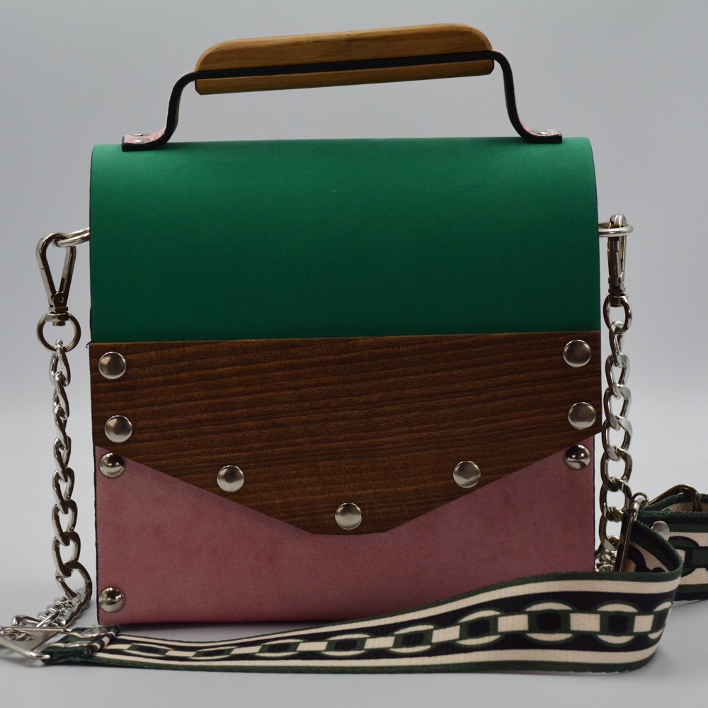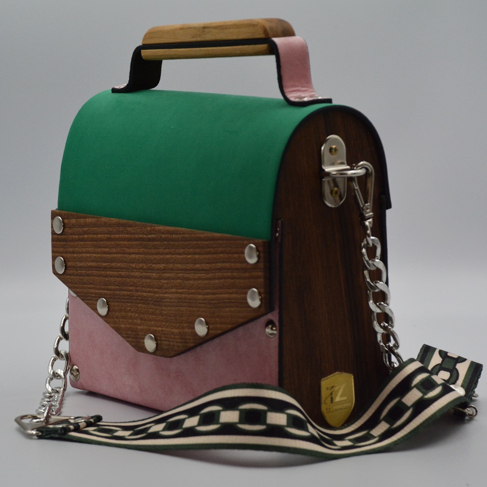Walnut wood sides female suede/nubuck hand and shoulder bag