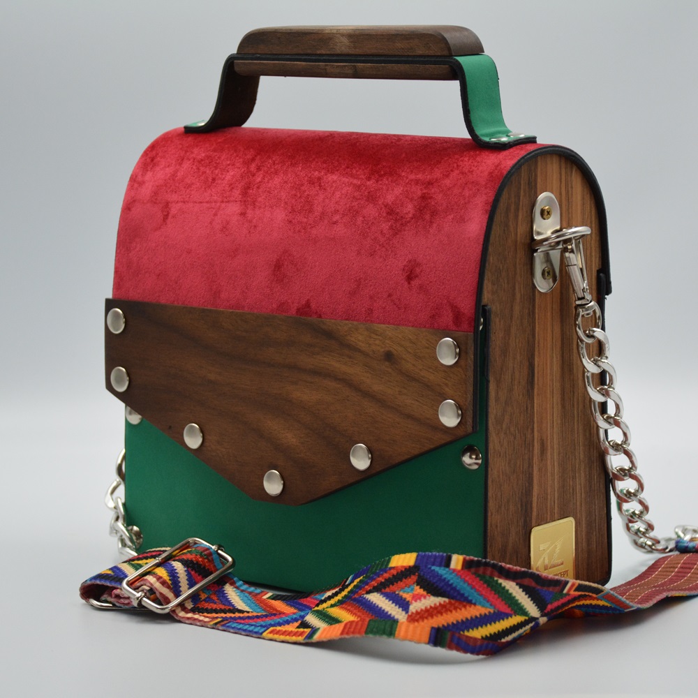 Walnut wood sides female suede/nubuck hand and shoulder bag