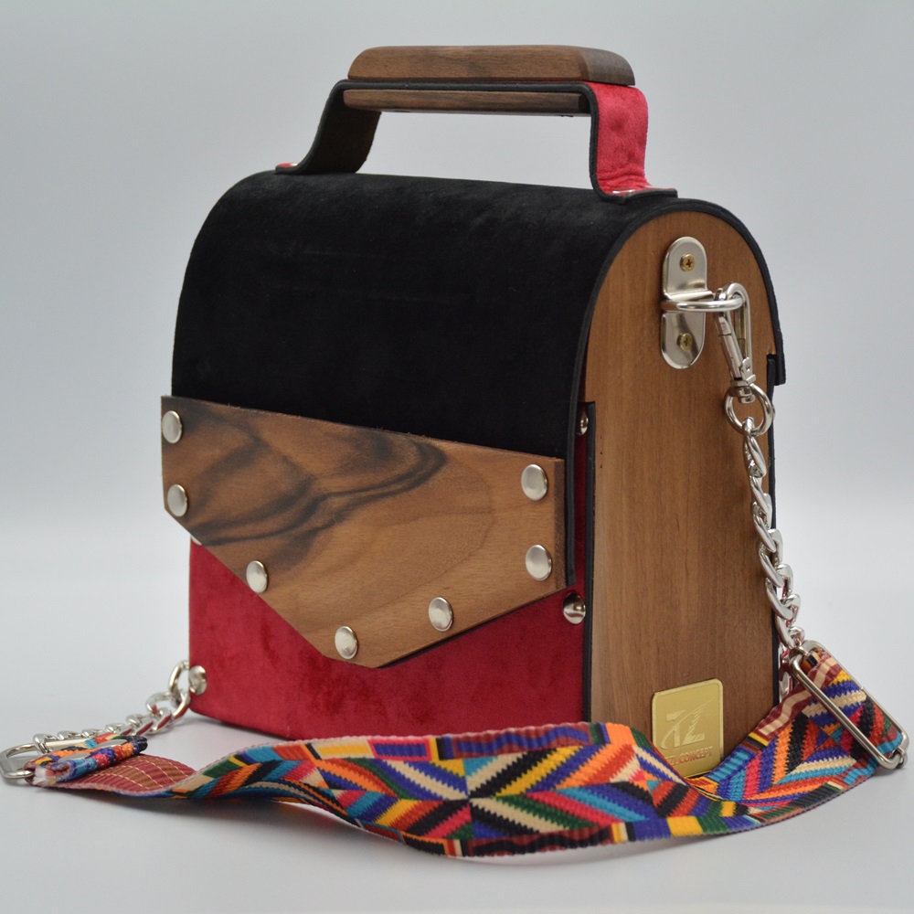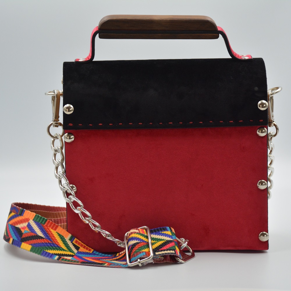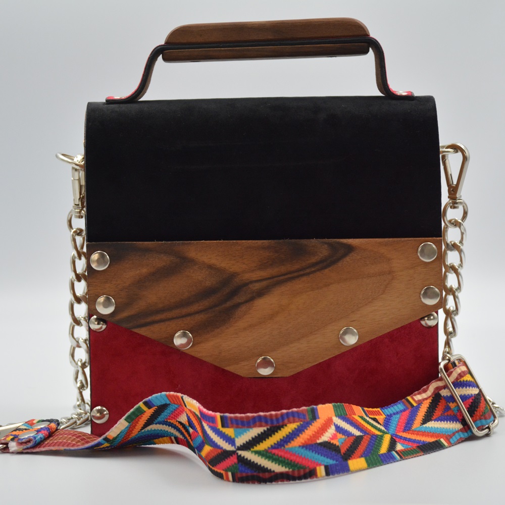 Walnut wood sides female suede/nubuck hand and shoulder bag