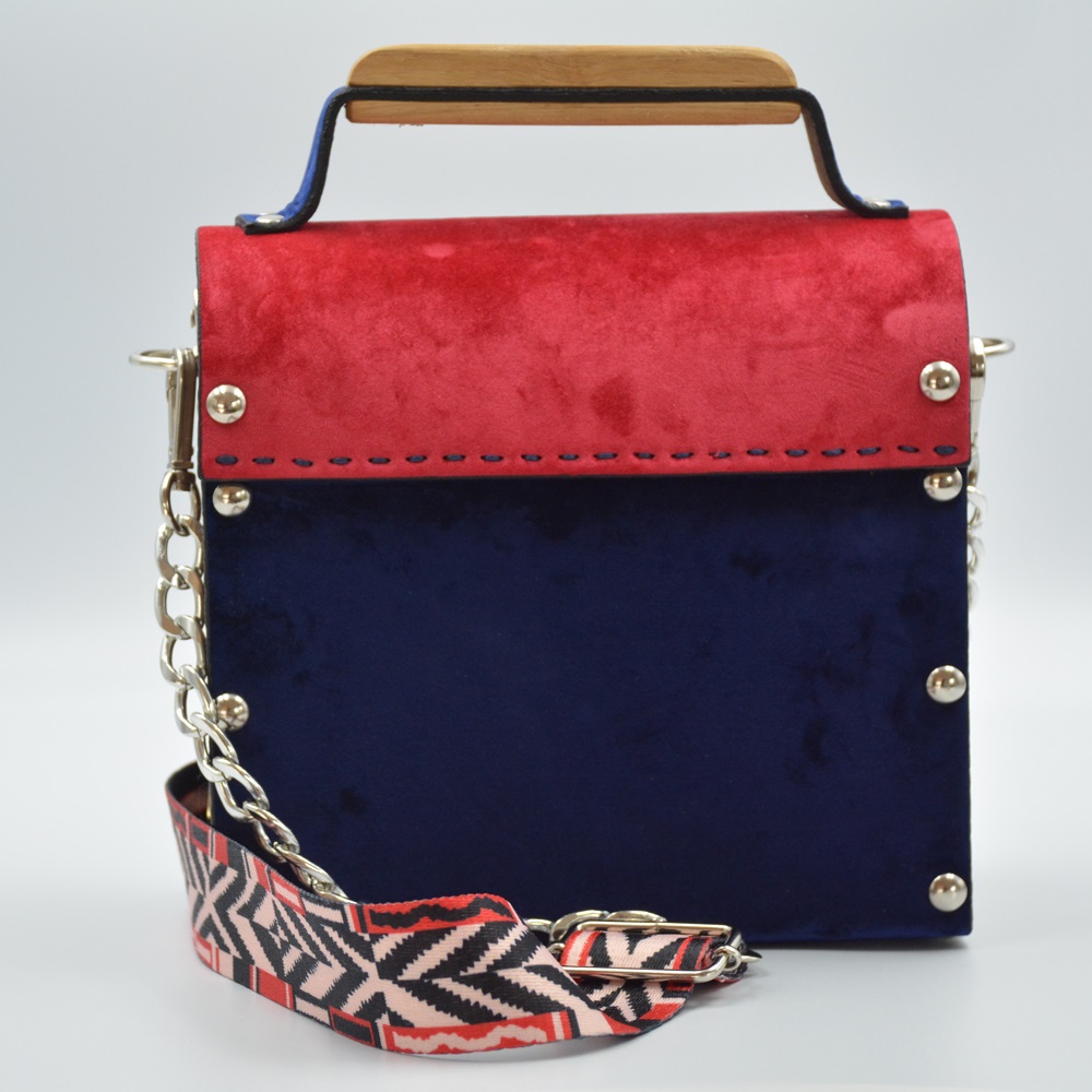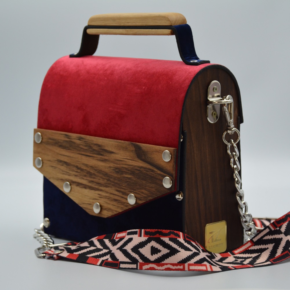 Walnut wood sides female suede/nubuck hand and shoulder bag