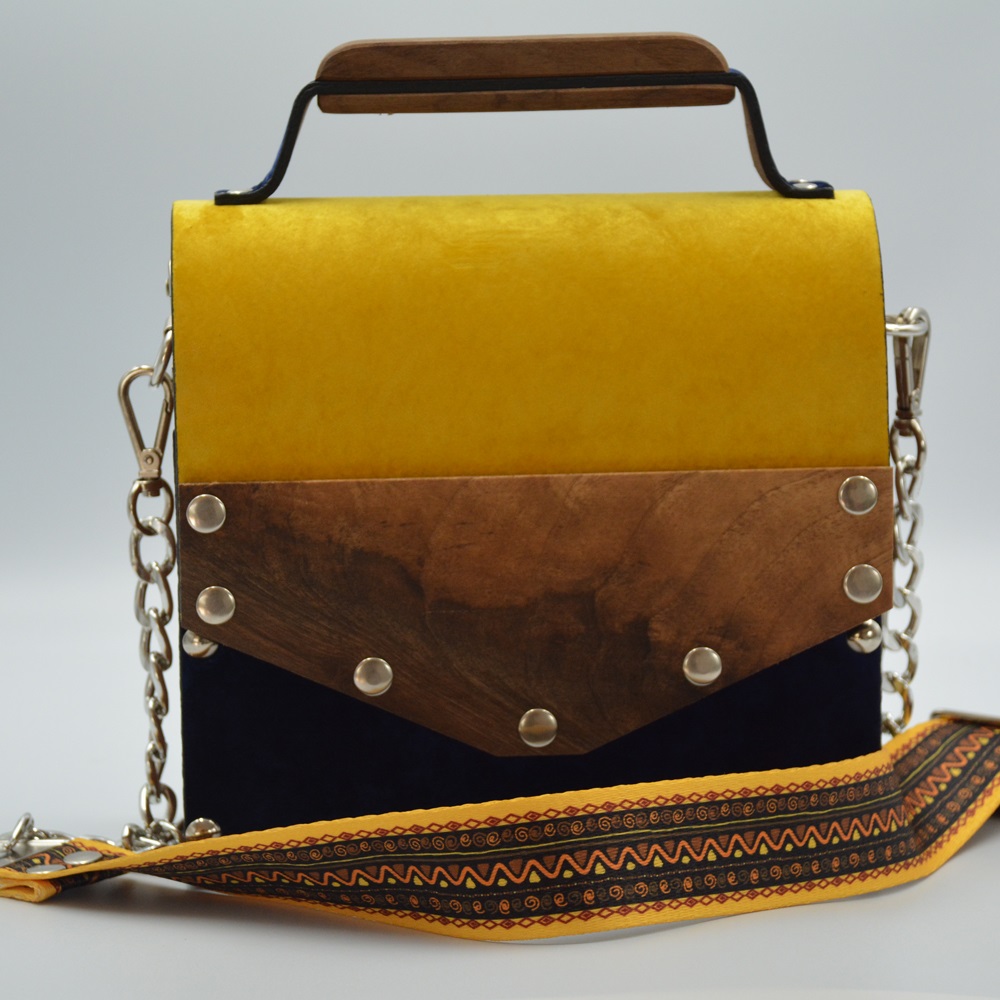 Walnut wood sides female suede/nubuck hand and shoulder bag