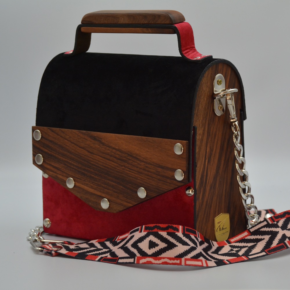 Walnut wood sides female suede/nubuck hand and shoulder bag