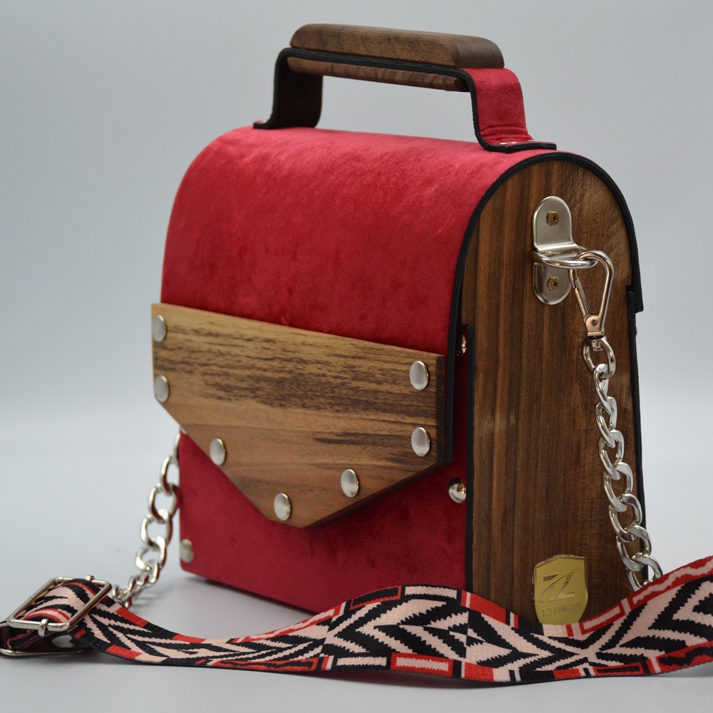 Walnut wood sides female suede/nubuck hand and shoulder bag