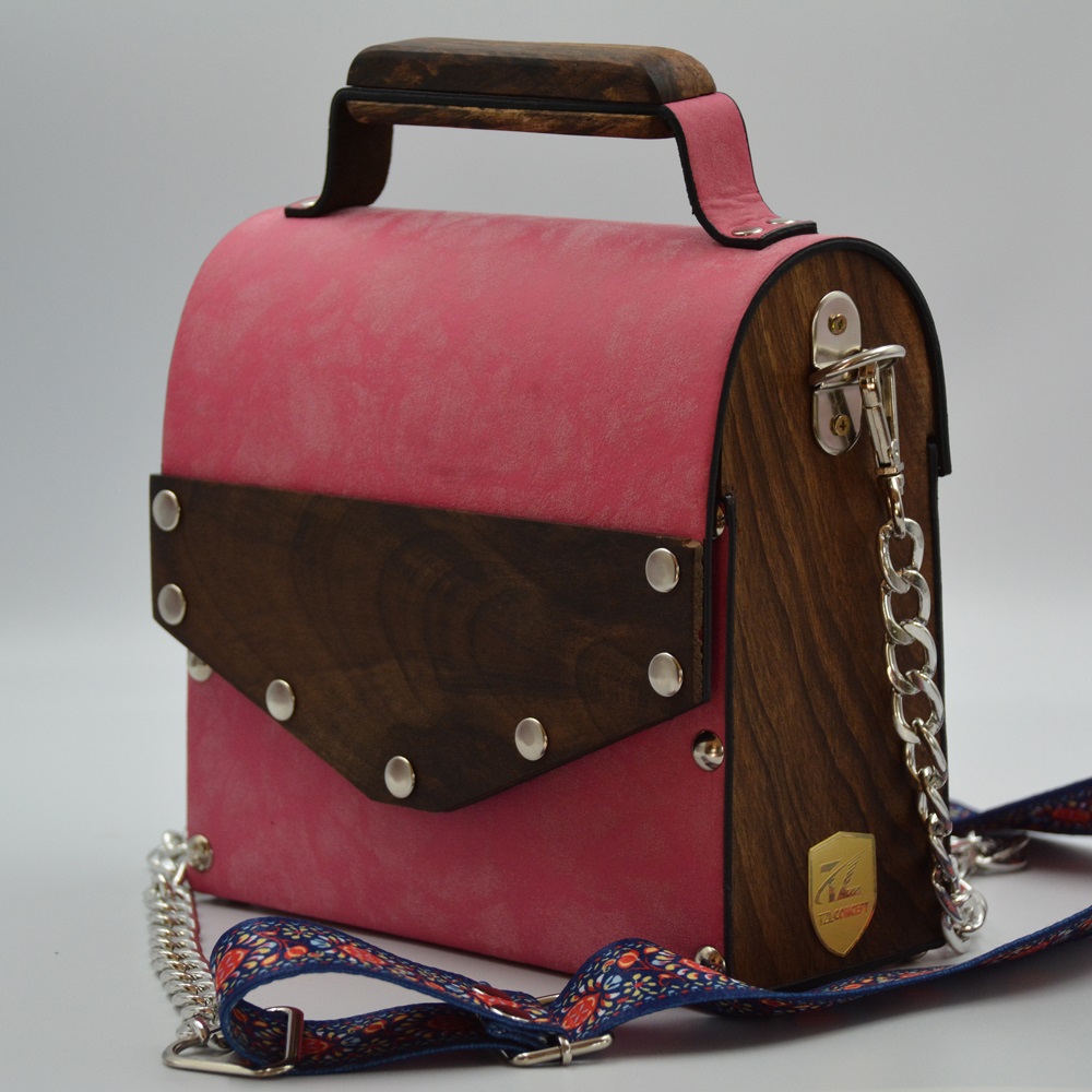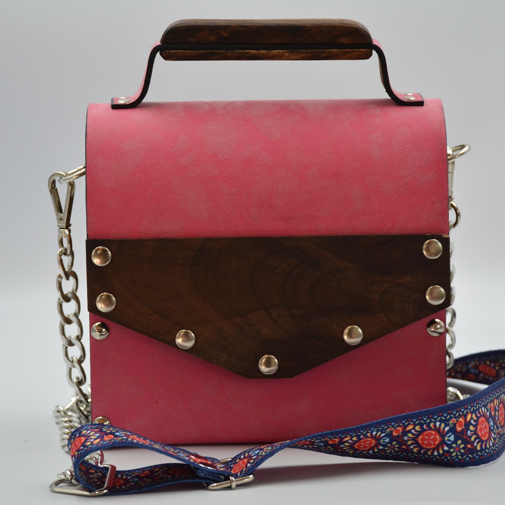 Walnut wood sides female suede/nubuck hand and shoulder bag