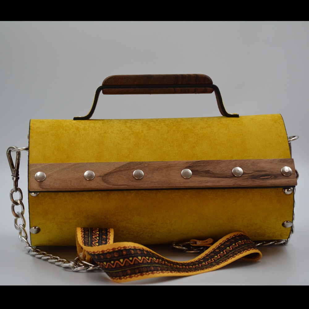 Walnut wood sides female suede/nubuck hand and shoulder bag rain drop