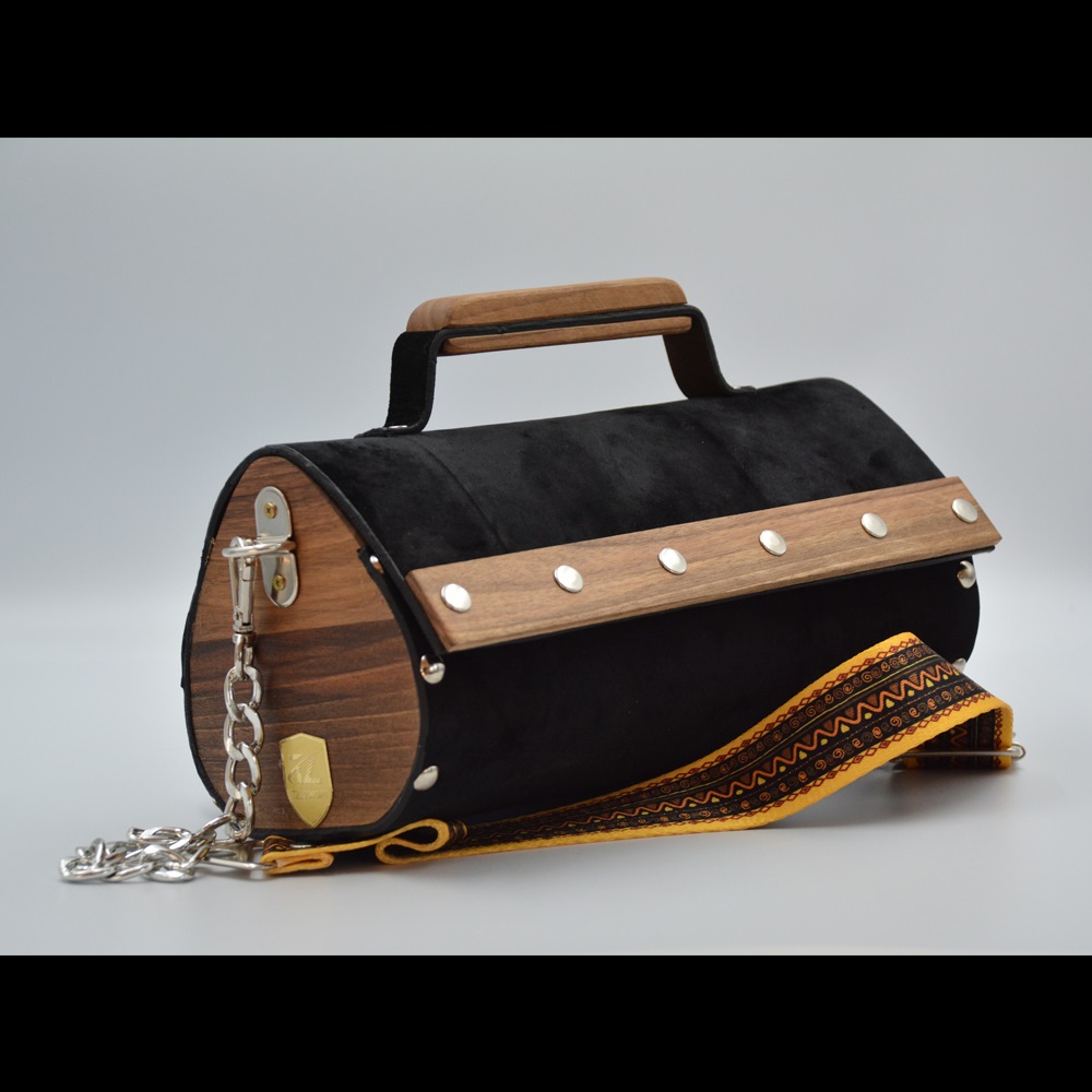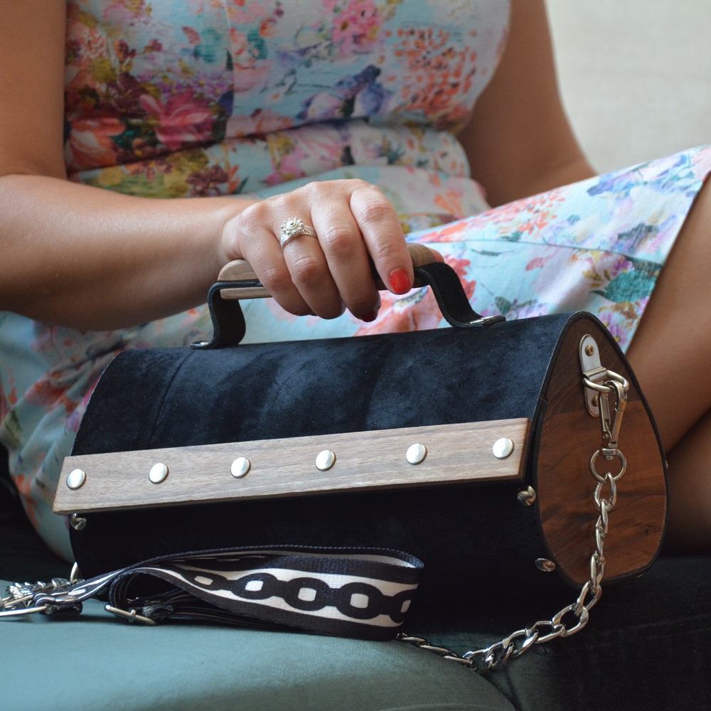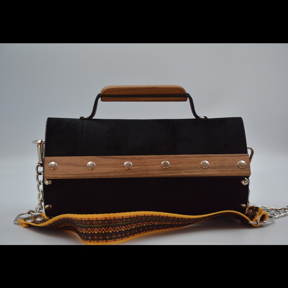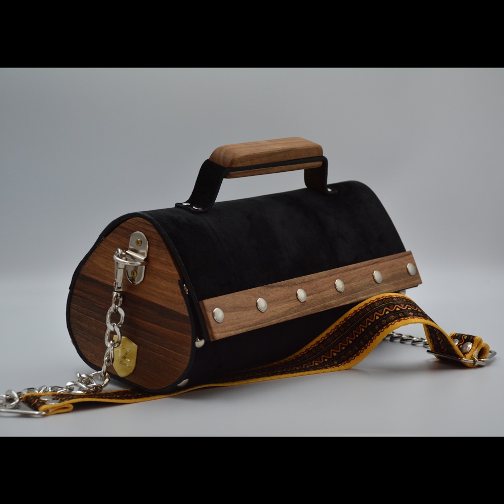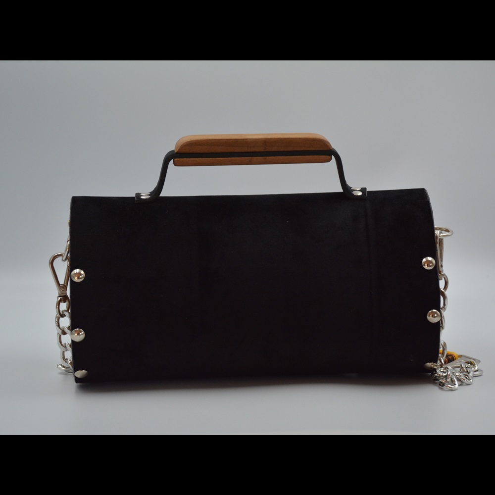 Walnut wood sides female suede/nubuck hand and shoulder bag rain drop