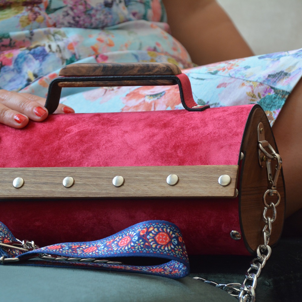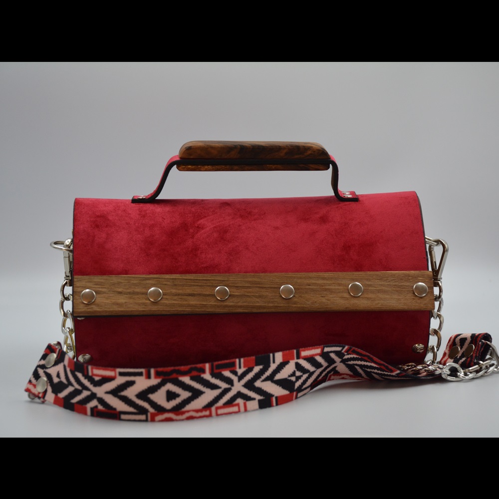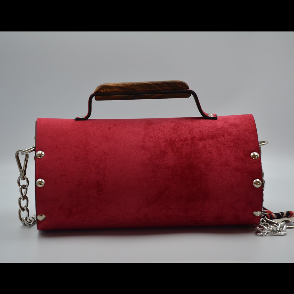 Walnut wood sides female suede/nubuck hand and shoulder bag rain drop