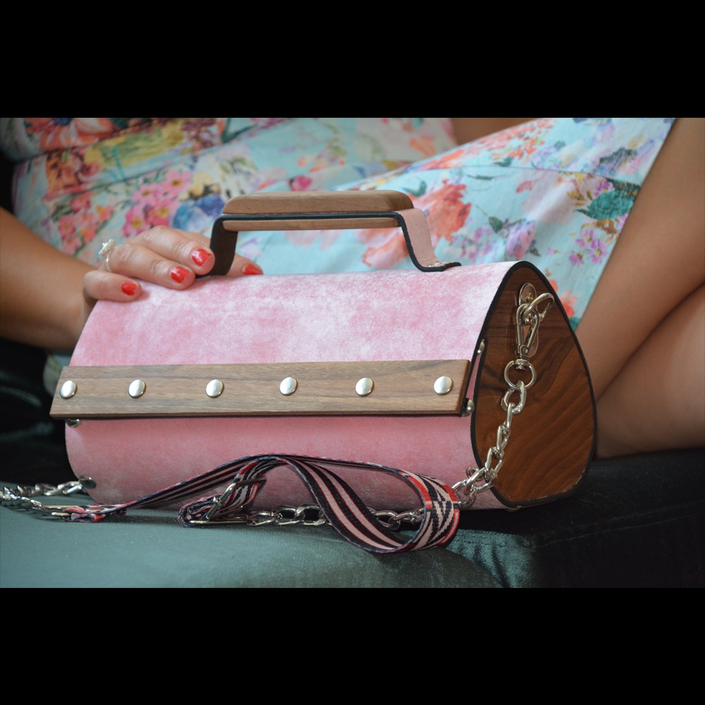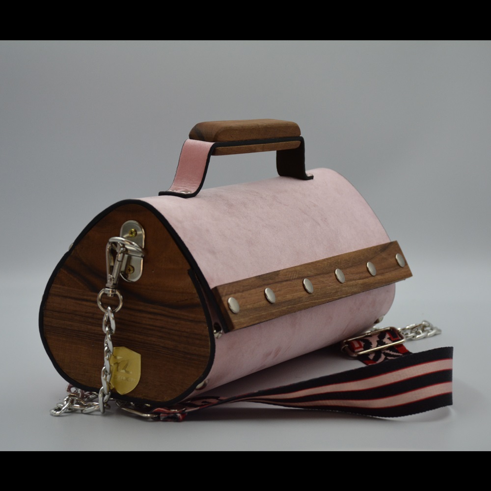 Walnut wood sides female suede/nubuck hand and shoulder bag rain drop