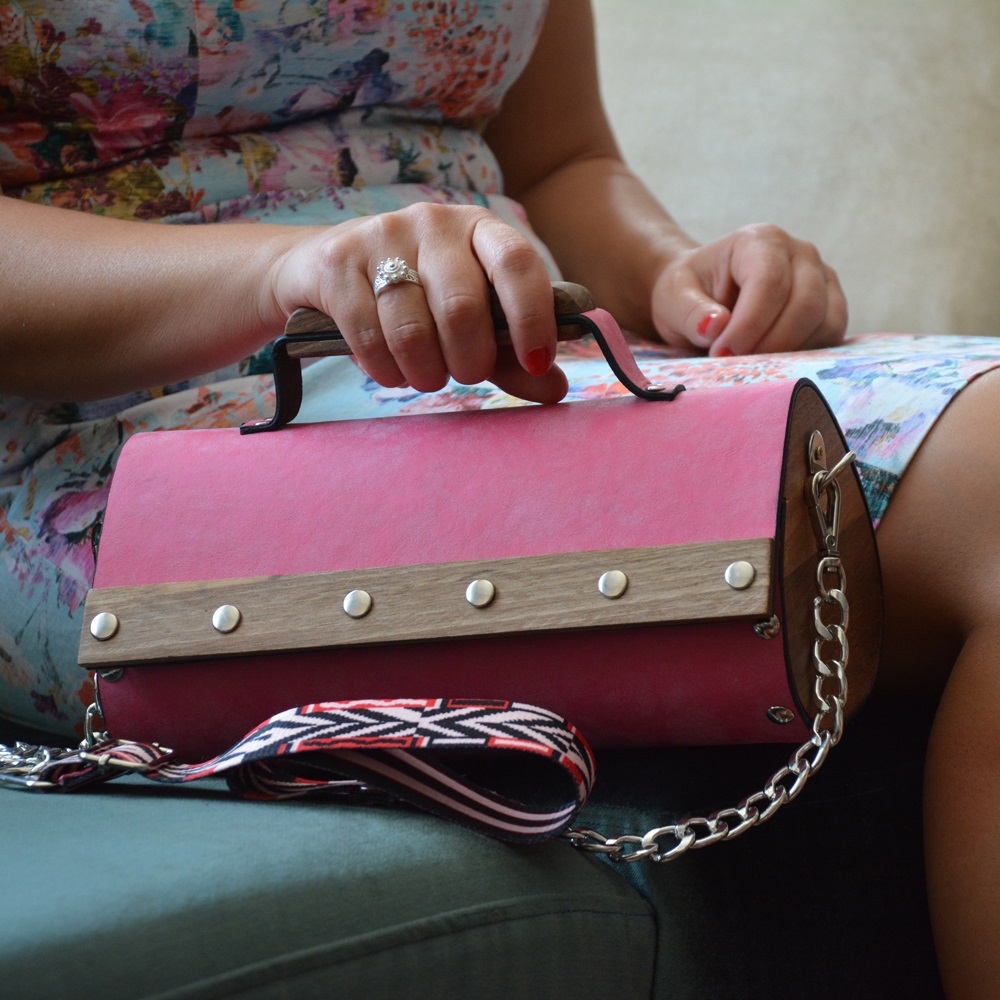Walnut wood sides female suede/nubuck hand and shoulder bag rain drop
