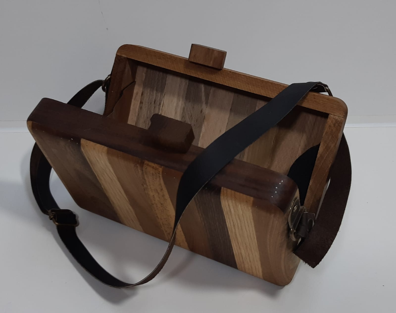 Wooden hand and shoulder bag/unisex.Made of %100 walnut and chestnut with Genuine Leather strap.